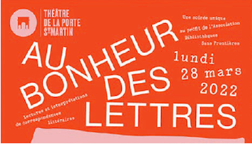 Il s’agit de la première édition de l’événement « Au bonheur des lettres », adaptation pour la scène des deux recueils de lettres du même nom, publiés aux éditions du Sous-Sol. L’événement prendra la forme d’une soirée caritative au profit de l’association « Bibliothèques sans Frontières » qui facilite l’accès à l’éducation, à la culture et à l’information pour les personnes vulnérables.