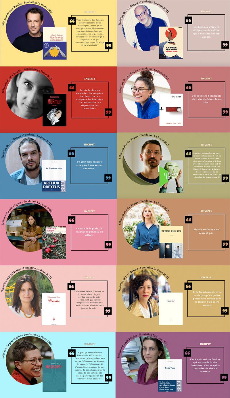 Le jury du Prix Wepler-Fondation La Poste dévoile aujourd’hui, mercredi 6 septembre, la liste des 12 œuvres en compétition pour l’édition 2023, sélectionnées parmi les romans parus entre mai et octobre 2023. Tous ces titres éblouissants seront portés par les différents acteurs du Prix durant plusieurs semaines jusqu’à l’annonce des lauréats le lundi 13 novembre.